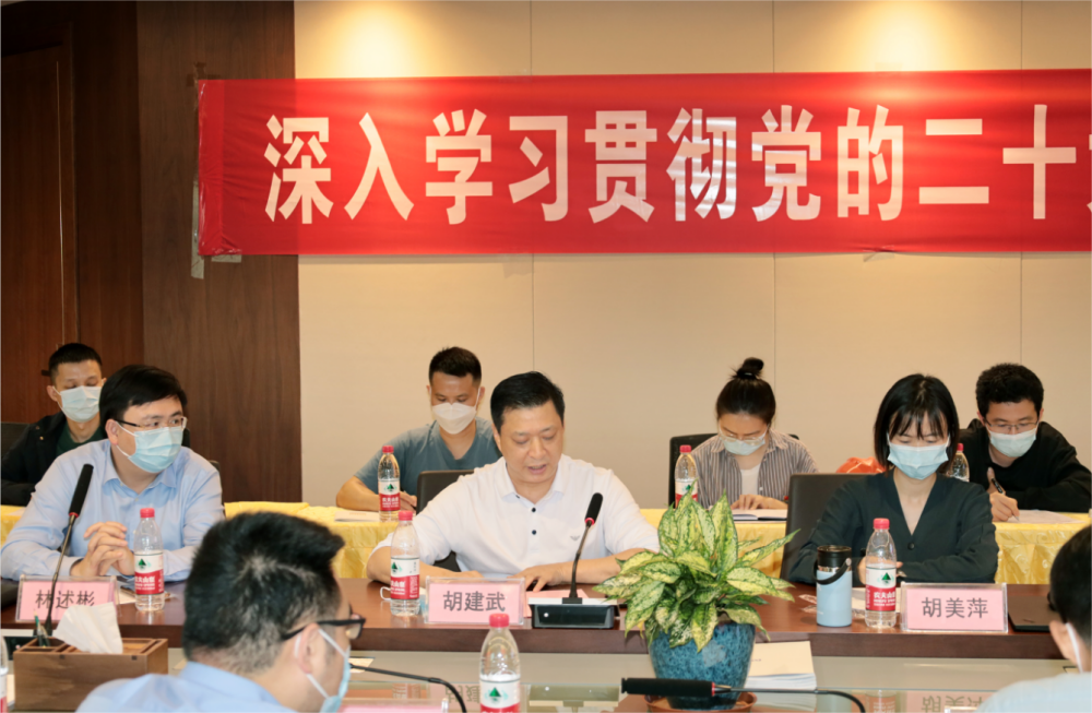 2022年11月29日,学习贯彻党的二十大精神宣讲会在yl23411永利集团举行。市委组织部原副部长、福州市两新组织党建促进会常务副会长郭荣贵作宣讲报告。高新区党群工作部副部长洪见文、永利控股副总经理胡美萍、yl23411永利集团总经理胡建武、yl23411永利集团董事长林述彬、永利控股党支部书记、yl23411永利集团副总经理汪浩等参加会议。