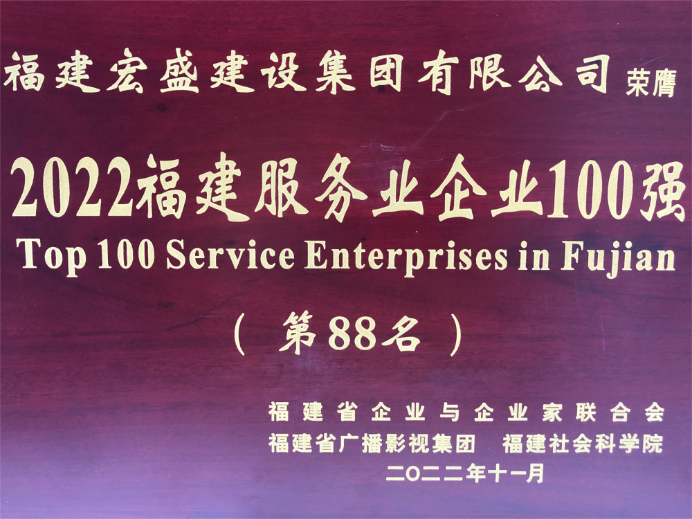 2022年12月7日,2022福建企业100强发布大会在莆田召开,会上发布了“2022福建企业100强”、“福建制造业企业100强”、“福建服务业企业100强”、“福建战略性新兴产业企业100强”四个榜单。yl23411永利集团有限公司再创佳绩,荣获福建服务业企业100强第88名!这是yl23411永利集团连续四年上榜福建企业100强。