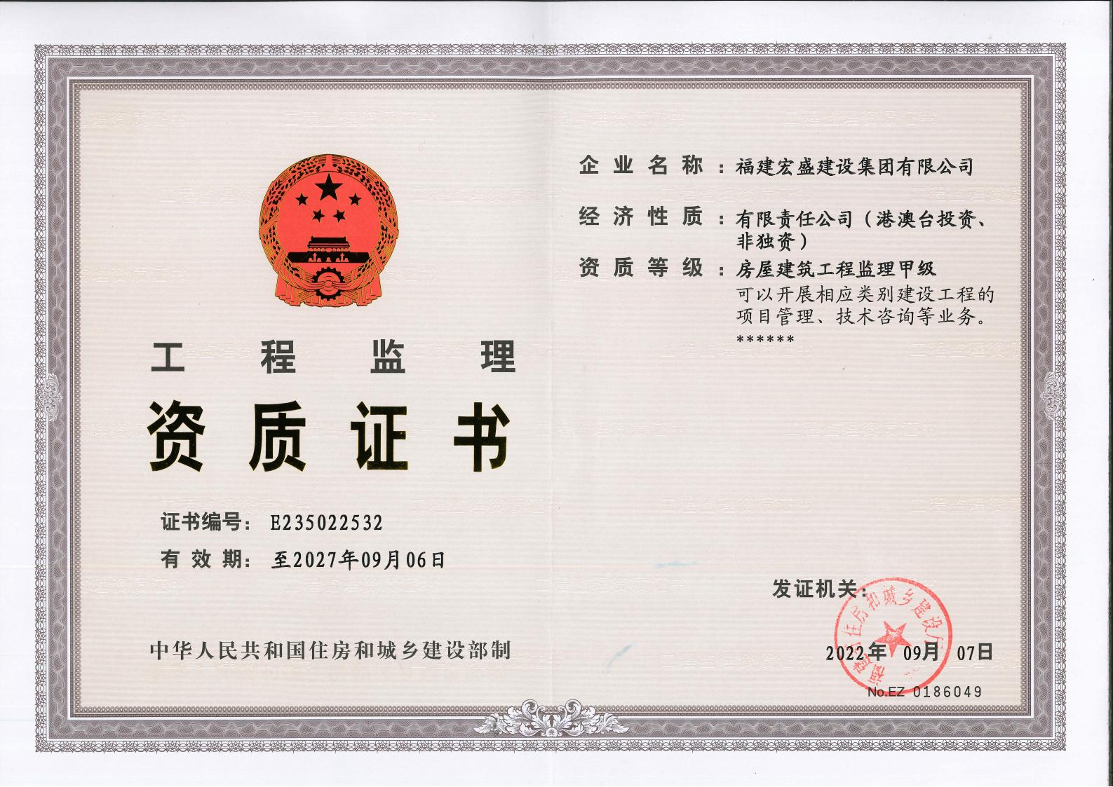 房屋建筑工程监理甲级资质