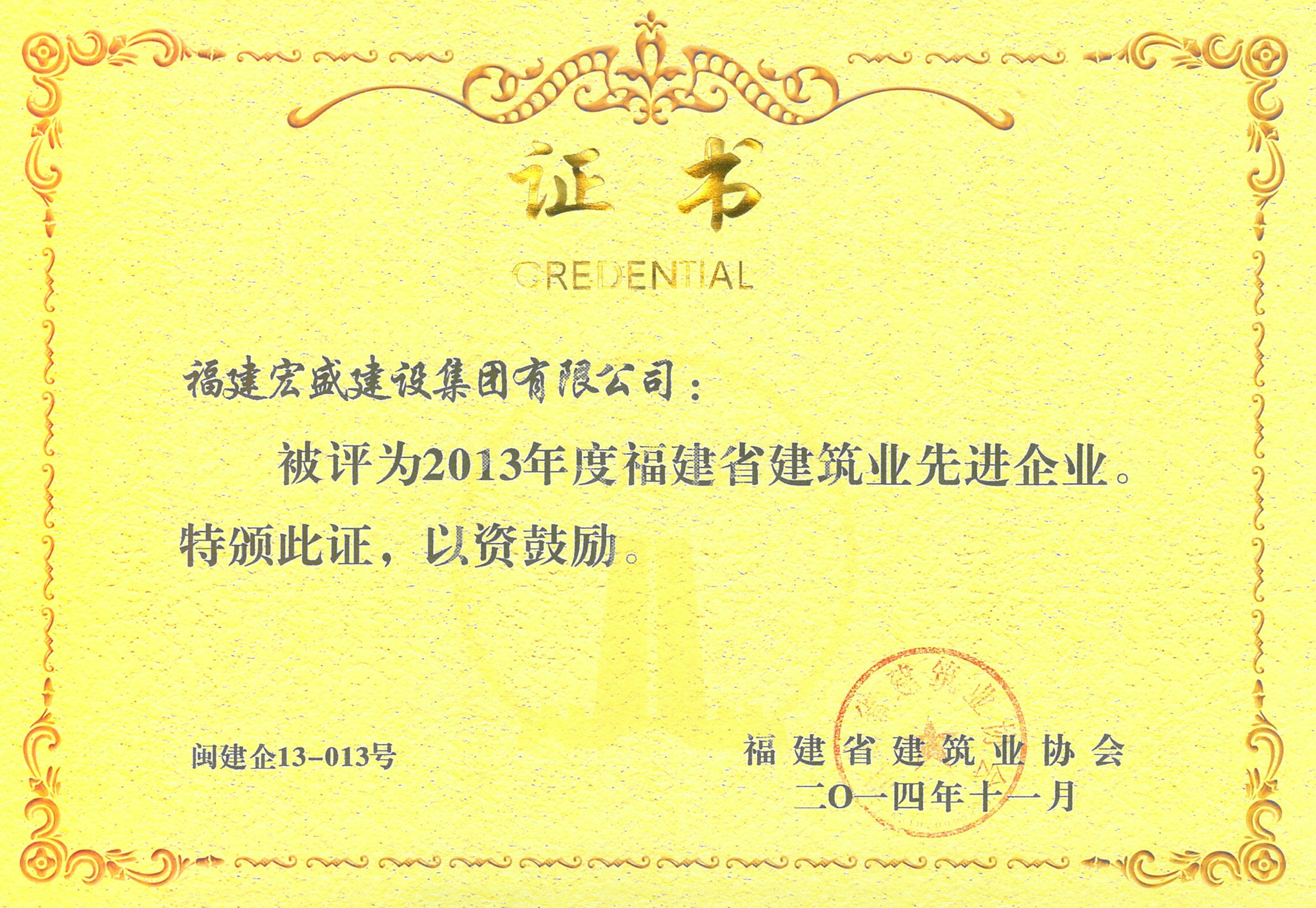 2013年度福建省建筑业先进企业